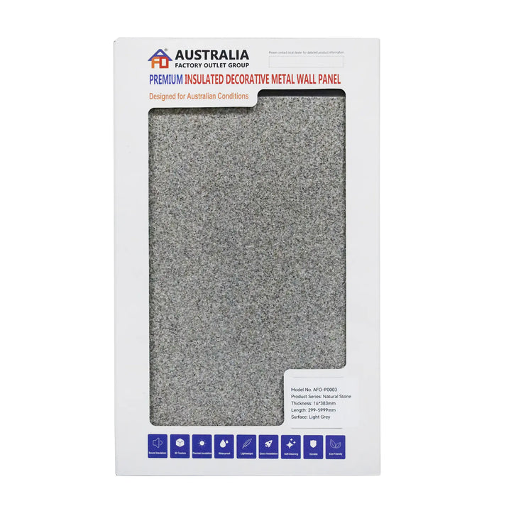 combines a decorative metal surface, high-density foam insulation core, and aluminum backing to achieve thermal efficiency, weather resistance, and a refined exterior texture.